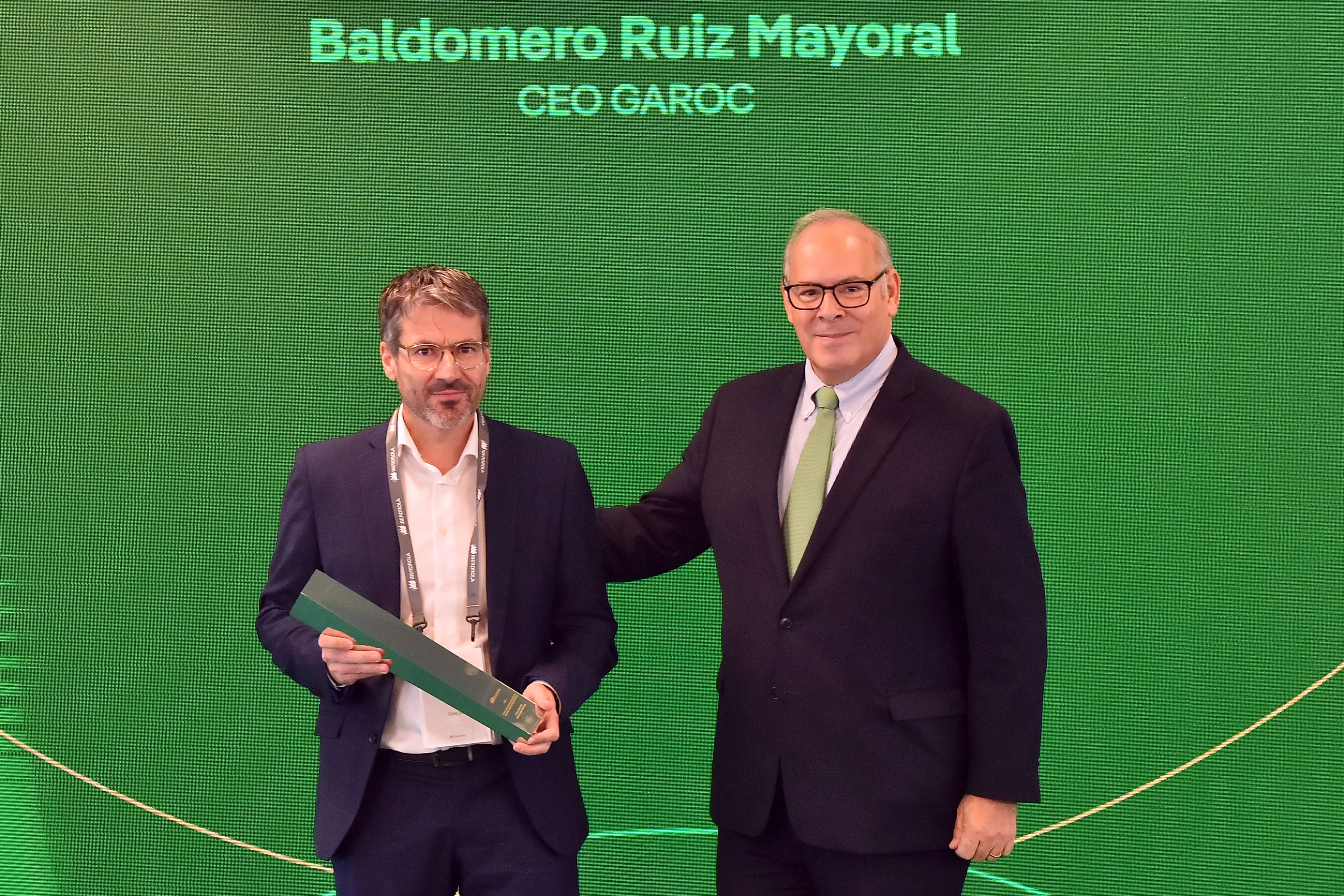 El CEO de Iberdrola España, Mario Ruiz-Tagle, entrega a Baldomero Ruiz Mayoral, CEO de GAROC, el premio al Mejor Proveedor de Obras y Servicios.