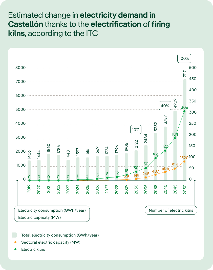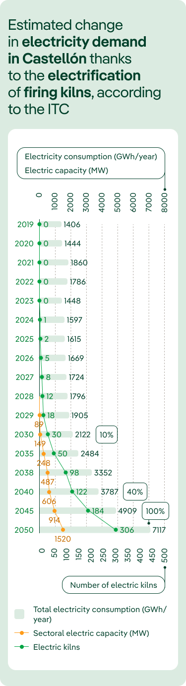 Electrifying kilns in the ceramics industry in Castellón will mean a significant increase in energy demand in the region, which will have to be gradual to achieve decarbonisation by the middle of the century.